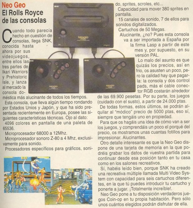 Neo-Geo, Noticias, SNK [Neo-Geo] El Rolls Royce de las consolas Fecha: 10/1991Autor/a: HCteca 0 Comentarios Comparte esto: Compartir en X (Se abre en una ventana nueva) X Compartir en Facebook (Se abre en una ventana nueva) Facebook Me gusta Cargando... Relacionado