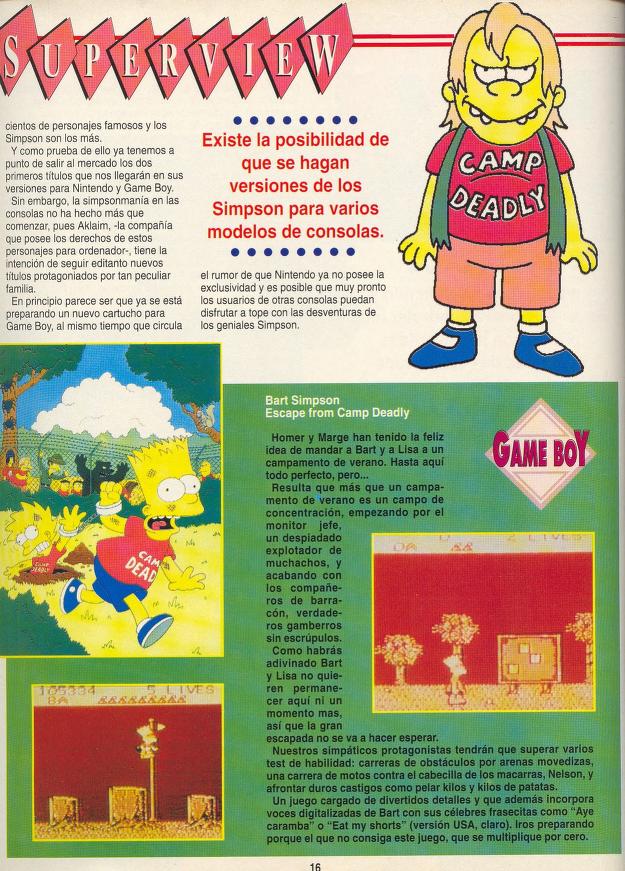Avances, Bart Simpson's Escape from Camp Deadly, Game Boy, NES, The Simpsons: Bart vs. the Space Mutants ¡Que vienen Los Simpson! [Avances de The Simpsons: Bart vs. the Space Mutants y Bart Simpson’s Escape from Camp Deadly] Fecha: 10/1991Autor/a: HCteca 0 Comentarios Comparte esto: Compartir en X (Se abre en una ventana nueva) X Compartir en Facebook (Se abre en una ventana nueva) Facebook Me gusta Cargando... Relacionado