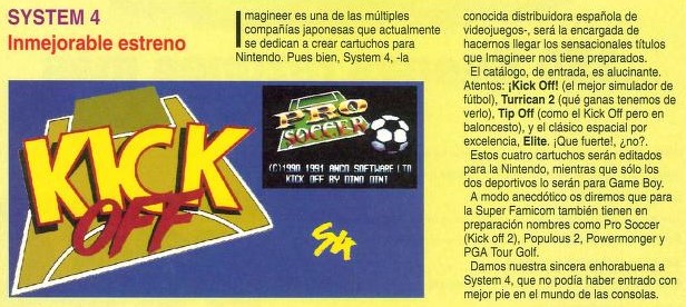 Elite, Game Boy, Imagineer, Kick Off, Kick Off 2, NES, Noticias, PGA Tour Golf, Populous II: Trials of the Olympian Gods, PowerMonger, Super Nintendo, System 4, Tip Off, Turrican II: The Final Fight