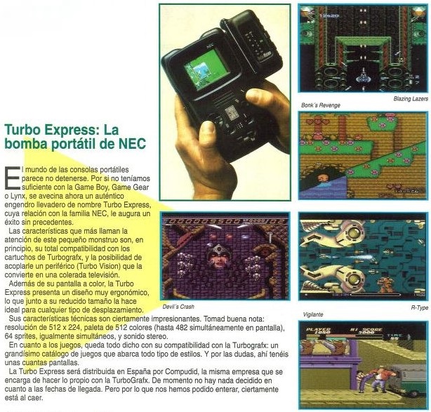 Blazing Lazers, Bonk's Revenge, Compudid, Devil's Crush, NEC, Noticias, R-Type, Turbo Vision, TurboExpress, Vigilante