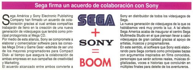 Game Gear, Mega CD, Mega Drive, Noticias, SEGA, Sony SEGA firma un acuardo de colaboración con Sony Fecha: 07/1992Autor/a: HCteca 0 Comentarios Comparte esto: Compartir en X (Se abre en una ventana nueva) X Compartir en Facebook (Se abre en una ventana nueva) Facebook Me gusta Cargando... Relacionado