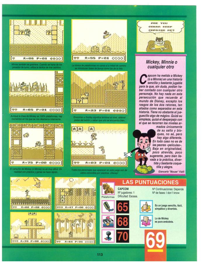 Análisis, Game Boy, Mickey's Dangerous Chase Mickey y las plataformas [Análisis de Mickey’s Dangerous Chase] Fecha: 09/1992Autor/a: HCteca 0 Comentarios Comparte esto: Compartir en X (Se abre en una ventana nueva) X Compartir en Facebook (Se abre en una ventana nueva) Facebook Me gusta Cargando... Relacionado