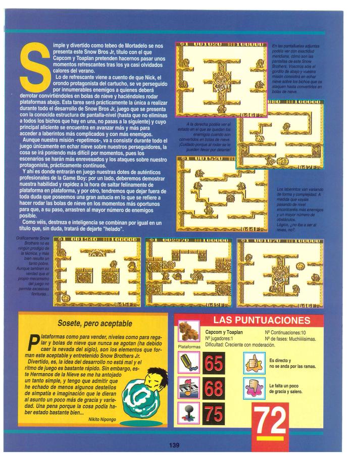 Análisis, Capcom, Game Boy, Snow Bros., Toaplan Retozando en la nieve [Análisis de Snow Bros.] Fecha: 10/1992Autor/a: HCteca 0 Comentarios Comparte esto: Compartir en X (Se abre en una ventana nueva) X Compartir en Facebook (Se abre en una ventana nueva) Facebook Me gusta Cargando... Relacionado