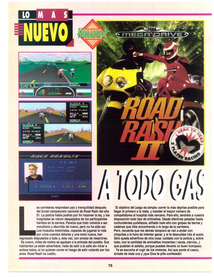 Análisis, Electronic Arts, Mega Drive, Road Rash II A todo gas [Análisis de Road Rash II] Fecha: 02/1993Autor/a: HCteca 0 Comentarios Comparte esto: Compartir en X (Se abre en una ventana nueva) X Compartir en Facebook (Se abre en una ventana nueva) Facebook Me gusta Cargando... Relacionado
