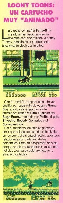 Game Boy, Looney Tunes, Noticias, Sunsoft Loony Toons: Un cartucho muy ‘animado’ Fecha: 03/1993Autor/a: HCteca 0 Comentarios Comparte esto: Compartir en X (Se abre en una ventana nueva) X Compartir en Facebook (Se abre en una ventana nueva) Facebook Me gusta Cargando... Relacionado