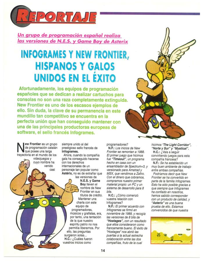 Astérix, Bit Managers, Entrevistas, Game Boy, NES Infogrames y New Frontier, hispanos y galos unidos en el éxito [Entrevista sobre Astérix] Fecha: 04/1993Autor/a: HCteca 0 Comentarios Comparte esto: Compartir en X (Se abre en una ventana nueva) X Compartir en Facebook (Se abre en una ventana nueva) Facebook Me gusta Cargando... Relacionado