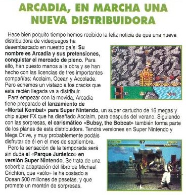 Acclaim, Accolade, Arcadia, Bubsy in: Claws Encounters of the Furred Kind, Jurassic Park, Mega Drive, Mortal Kombat, Noticias, Ocean, Super Nintendo