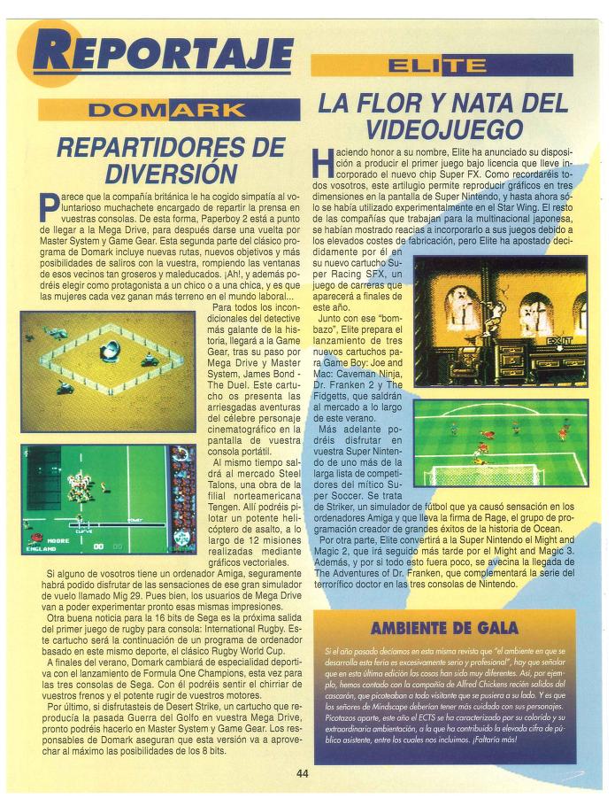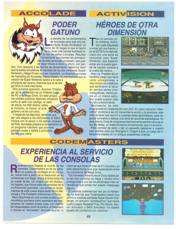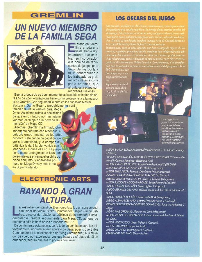 Accolade, Activision, Codemasters, Domark, ECTS (European Computer Trade Show), Electronic Arts, Elite, Gremlin, Interplay, JVC, Konami, Microprose, Mindscape, Ocean, Psygnosis, Reportajes, SEGA, Sony, System 3, TecMagik, The Sales Curve, Tradewest, U.S. Gold, Virgin