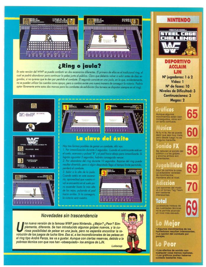 Acclaim, Análisis, LJN, NES, WWF WrestleMania: Steel Cage Challenge La ley del mamporro [Análisis de WWF WrestleMania: Steel Cage Challenge] Fecha: 07/1993Autor/a: HCteca 0 Comentarios Comparte esto: Compartir en X (Se abre en una ventana nueva) X Compartir en Facebook (Se abre en una ventana nueva) Facebook Me gusta Cargando... Relacionado