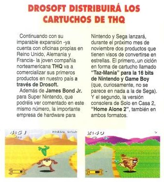 Dro Software, Game Boy, Home Alone 2: Lost in New York, James Bond Jr., Noticias, Super Nintendo, Taz-Mania, THQ