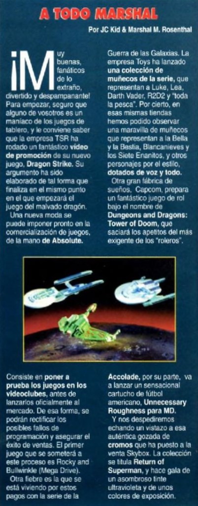 Absolute, Accolade, Advanced Dungeons and Dragons: DragonStrike, Capcom, Dungeons and Dragons: Tower of Doom, Mega Drive, Noticias, The Adventures of Rocky and Bullwinkle and Friends, TSR, Unnecessary Roughness A todo Marshal (#9) Fecha: 11/1993Autor/a: HCteca 0 Comentarios Comparte esto: Compartir en X (Se abre en una ventana nueva) X Compartir en Facebook (Se abre en una ventana nueva) Facebook Me gusta Cargando... Relacionado