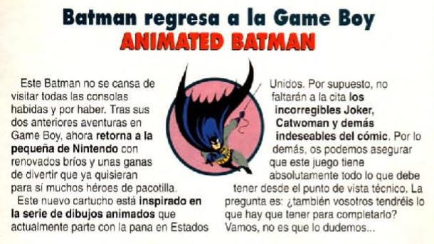 Batman: The Animated Series, Game Boy, Noticias [Animated Batman] Batman regresa a la Game Boy Fecha: 11/1993Autor/a: HCteca 0 Comentarios Comparte esto: Compartir en X (Se abre en una ventana nueva) X Compartir en Facebook (Se abre en una ventana nueva) Facebook Me gusta Cargando... Relacionado