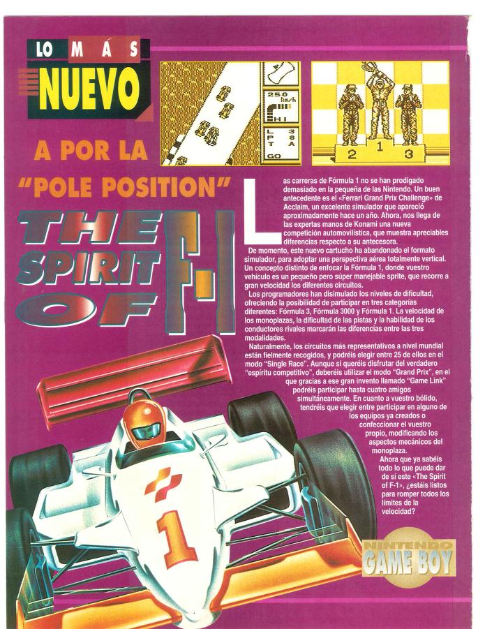 Análisis, Game Boy, Konami, Palcom Software, The Spirit of F1 A por la ‘pole position’ [Análisis de The Spirit of F1] Fecha: 12/1993Autor/a: HCteca 0 Comentarios Comparte esto: Compartir en X (Se abre en una ventana nueva) X Compartir en Facebook (Se abre en una ventana nueva) Facebook Me gusta Cargando... Relacionado