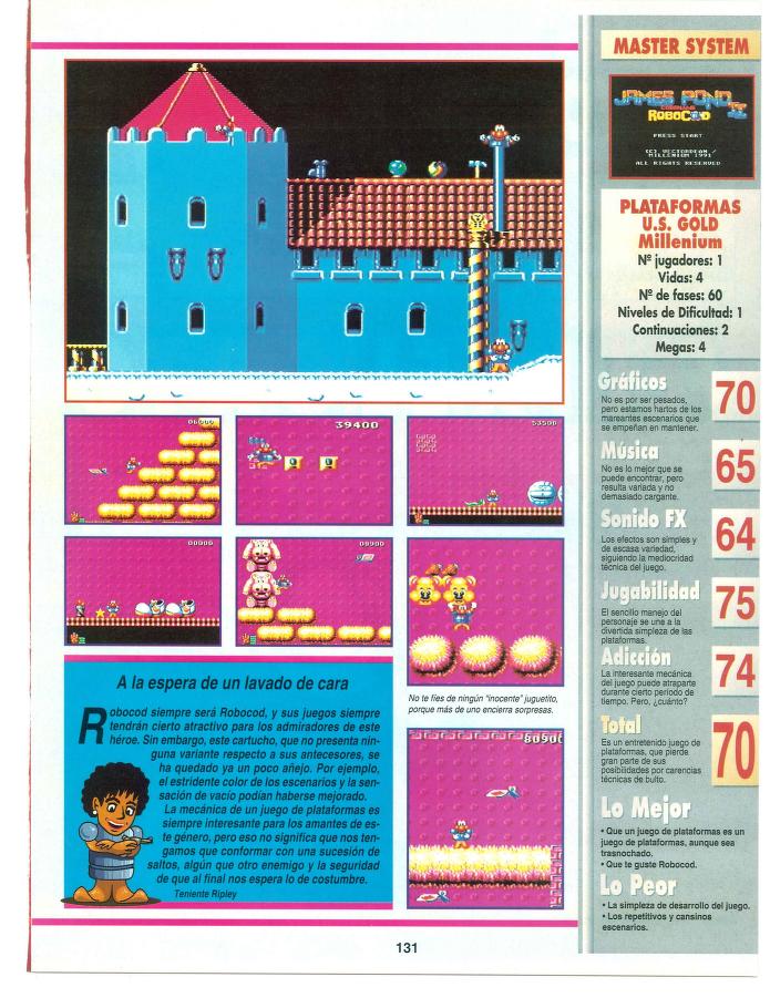 Análisis, James Pond II: Codename RoboCod, Master System, Millennium, U.S. Gold Al servicio de la Navidad [Análisis de James Pond II: Codename RoboCod] Fecha: 12/1993Autor/a: HCteca 0 Comentarios Comparte esto: Compartir en X (Se abre en una ventana nueva) X Compartir en Facebook (Se abre en una ventana nueva) Facebook Me gusta Cargando... Relacionado