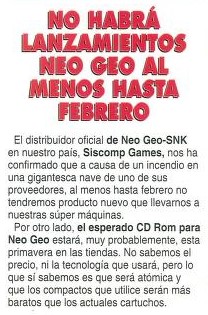 Neo-Geo, Noticias, Siscomp Games, SNK No habrá lanzamientos Neo-Geo al menos hasta febrero Fecha: 12/1993Autor/a: HCteca 0 Comentarios Comparte esto: Compartir en X (Se abre en una ventana nueva) X Compartir en Facebook (Se abre en una ventana nueva) Facebook Me gusta Cargando... Relacionado