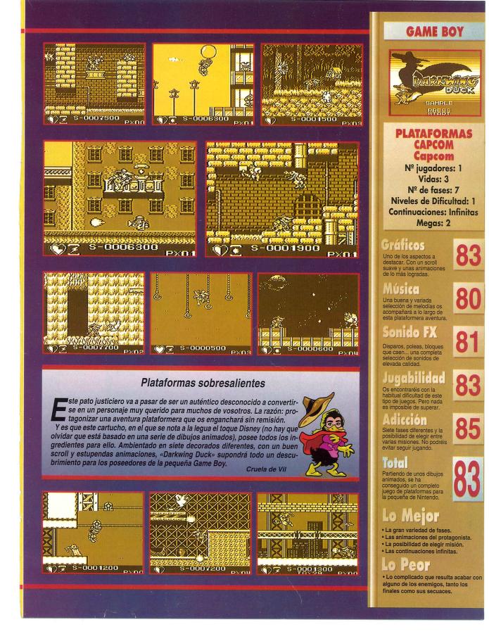 Análisis, Capcom, Disney's Darkwing Duck, Game Boy Un justiciero con plumas y pico [Análisis de Disney’s Darkwing Duck] Fecha: 12/1993Autor/a: HCteca 0 Comentarios Comparte esto: Compartir en X (Se abre en una ventana nueva) X Comparte en Facebook (Se abre en una ventana nueva) Facebook Me gusta Cargando... Relacionado