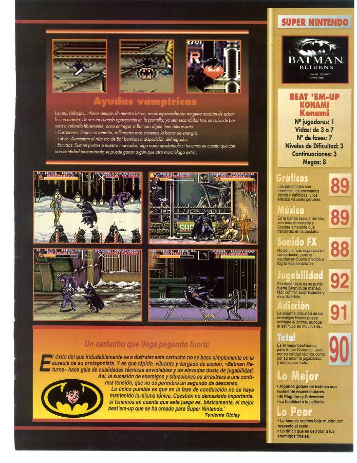 Análisis, Batman Returns, Konami, Super Nintendo Una faceta desconocida [Análisis de Batman Returns] Fecha: 12/1993Autor/a: HCteca 0 Comentarios Comparte esto: Compartir en X (Se abre en una ventana nueva) X Compartir en Facebook (Se abre en una ventana nueva) Facebook Me gusta Cargando... Relacionado