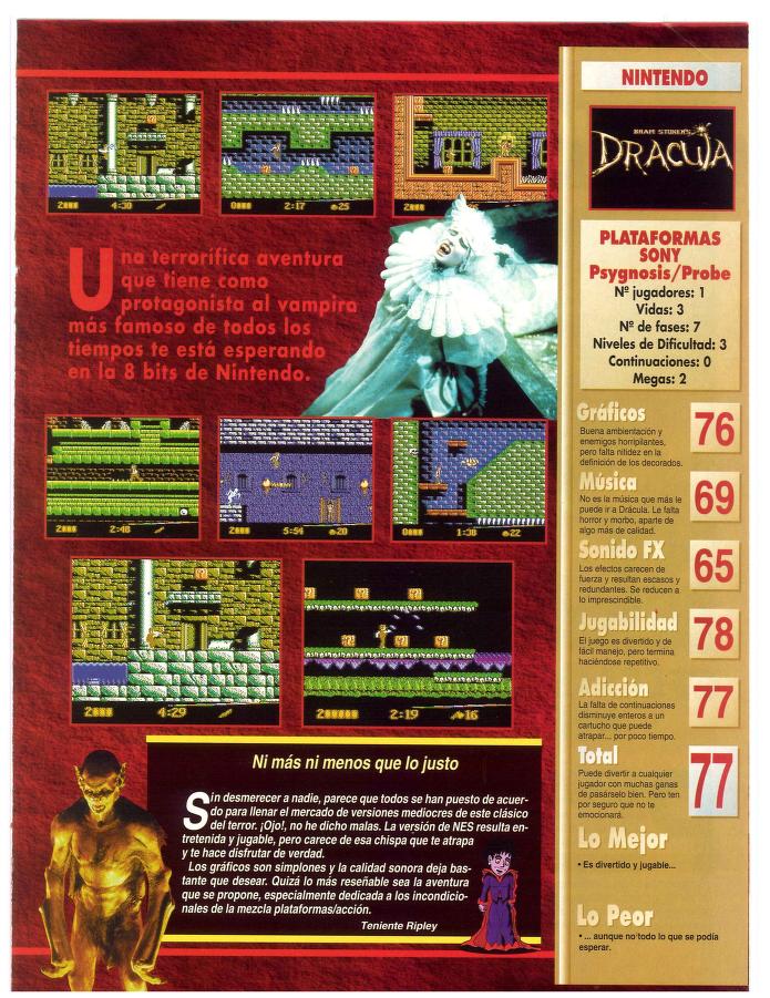 Análisis, Bram Stoker's Dracula, NES, Probe Software, Psygnosis, Sony El chupasangre [Análisis de Bram Stoker’s Dracula] Fecha: 02/1994Autor/a: HCteca 0 Comentarios Comparte esto: Compartir en X (Se abre en una ventana nueva) X Compartir en Facebook (Se abre en una ventana nueva) Facebook Me gusta Cargando... Relacionado