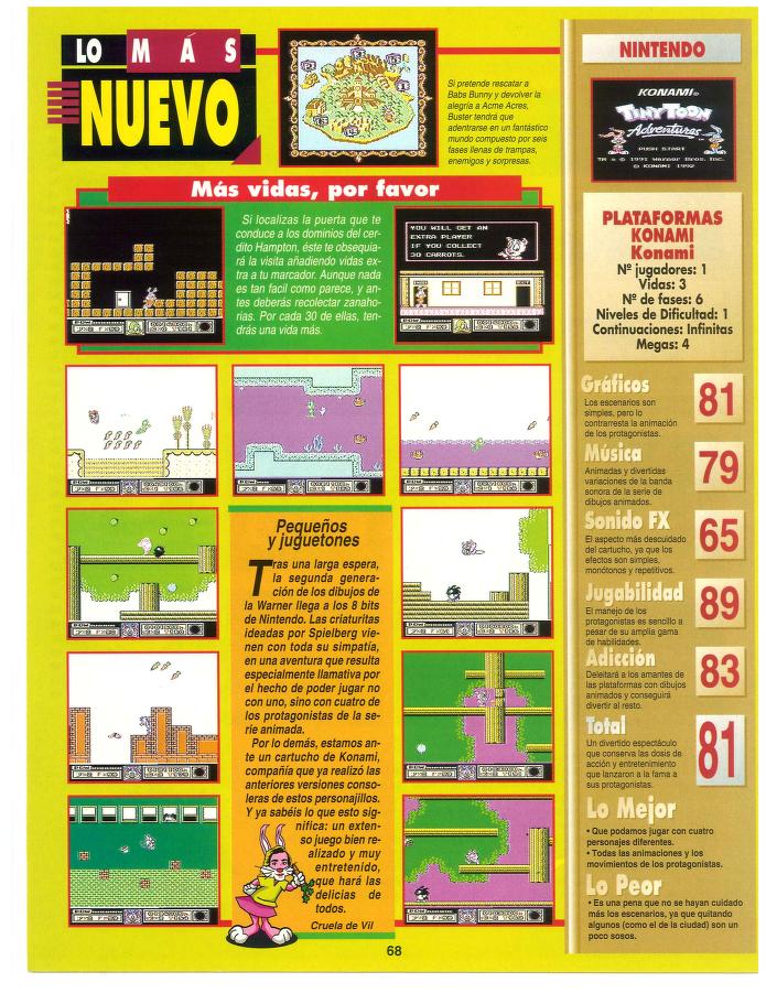 Análisis, Konami, NES, Tiny Toon Adventures Me paso el día saltando [Análisis de Tiny Toon Adventures] Fecha: 02/1994Autor/a: HCteca 0 Comentarios Comparte esto: Compartir en X (Se abre en una ventana nueva) X Compartir en Facebook (Se abre en una ventana nueva) Facebook Me gusta Cargando... Relacionado