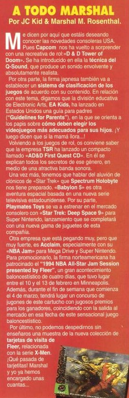 Acclaim, Capcom, Dungeons and Dragons: Tower of Doom, Electronic Arts, Mega Drive, NBA Jam, Noticias, Playmates Toys, Star Trek: Deep Space Nine - Crossroads of Time, Super Nintendo A todo Marshal (#13) Fecha: 03/1994Autor/a: HCteca 0 Comentarios Comparte esto: Compartir en X (Se abre en una ventana nueva) X Compartir en Facebook (Se abre en una ventana nueva) Facebook Me gusta Cargando... Relacionado