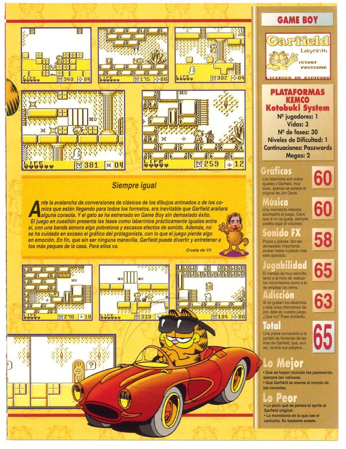 Análisis, Game Boy, Garfield Labyrinth, Kemco, Kotobuki System Por favor, ¿la salida? [Análisis de Garfield Labyrinth] Fecha: 03/1994Autor/a: HCteca 0 Comentarios Comparte esto: Compartir en X (Se abre en una ventana nueva) X Compartir en Facebook (Se abre en una ventana nueva) Facebook Me gusta Cargando... Relacionado