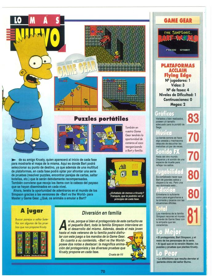 Acclaim, Análisis, Flying Edge, Game Gear, Master System, The Simpsons: Bart vs. the World El loco viaje de una familia grillada [Análisis de The Simpsons: Bart vs. the World] Fecha: 04/1994Autor/a: HCteca 0 Comentarios Comparte esto: Compartir en X (Se abre en una ventana nueva) X Compartir en Facebook (Se abre en una ventana nueva) Facebook Me gusta Cargando... Relacionado
