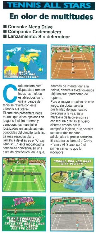 Avances, Codemasters, Mega Drive, Tennis All Stars El olor de multitudes [Avance de Tennis All Stars] Fecha: 04/1994Autor/a: HCteca 0 Comentarios Comparte esto: Compartir en X (Se abre en una ventana nueva) X Compartir en Facebook (Se abre en una ventana nueva) Facebook Me gusta Cargando... Relacionado