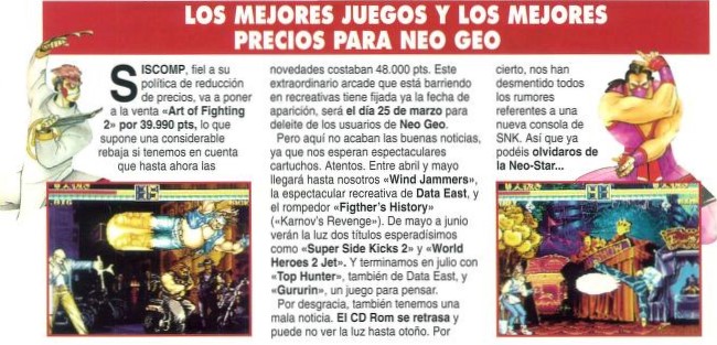 Art of Fighting 2, Data East, Fighter's History, Gururin, Neo-Geo, Neo-Geo CD, Noticias, Siscomp Games, SNK, Super Sidekicks 2, Top Hunter: Roddy and Cathy, WindJammers, World Heroes 2 Jet