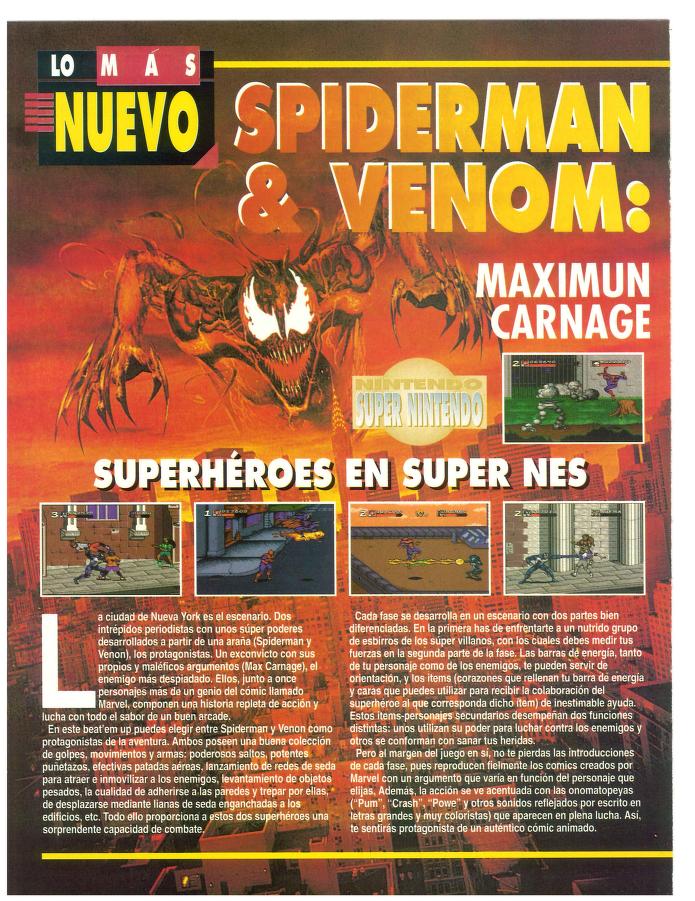 Acclaim, Análisis, Nintendo, Spider-Man and Venom: Maximum Carnage, Super Nintendo Superhéroes en Super NES [Análisis de Spider-Man and Venom: Maximum Carnage] Fecha: 08/1994Autor/a: HCteca 0 Comentarios Comparte esto: Compartir en X (Se abre en una ventana nueva) X Compartir en Facebook (Se abre en una ventana nueva) Facebook Me gusta Cargando... Relacionado