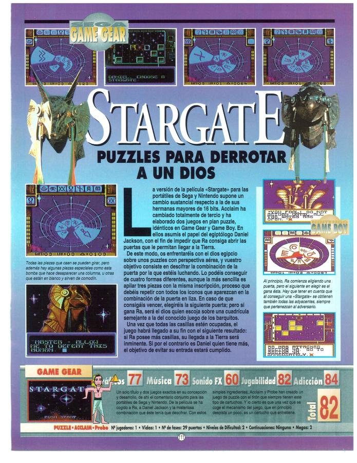 Acclaim, Análisis, Game Gear, Probe Software, Stargate Puzzles para derrotar a un dios [Análisis de Stargate] Fecha: 04/1995Autor/a: HCteca 0 Comentarios Comparte esto: Compartir en X (Se abre en una ventana nueva) X Compartir en Facebook (Se abre en una ventana nueva) Facebook Me gusta Cargando... Relacionado