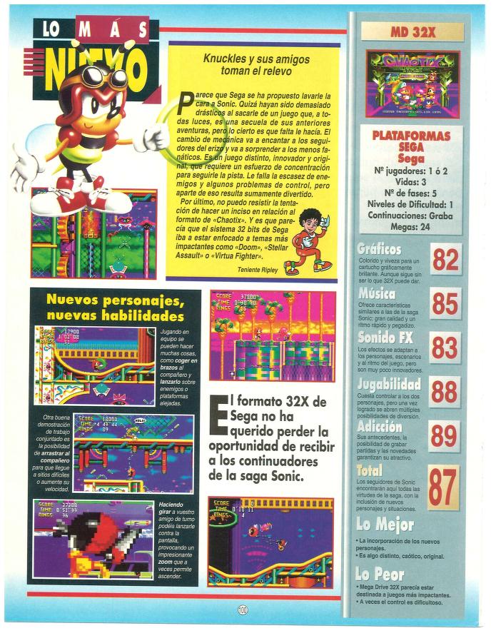 32X, Análisis, Knuckles' Chaotix, SEGA Otra manera de jugar a Sonic [Análisis de Knuckles’ Chaotix] Fecha: 07/1995Autor/a: HCteca 0 Comentarios Comparte esto: Compartir en X (Se abre en una ventana nueva) X Compartir en Facebook (Se abre en una ventana nueva) Facebook Me gusta Cargando... Relacionado