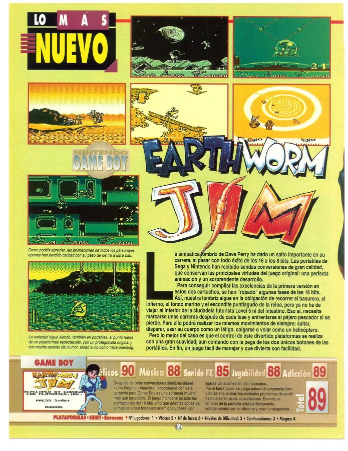 Análisis, Earthworm Jim, Eurocom, Game Boy, Game Gear, Shiny Una lombriz para todos los bolsillos [Análisis de Earthworm Jim] Fecha: 07/1995Autor/a: HCteca 0 Comentarios Comparte esto: Compartir en X (Se abre en una ventana nueva) X Compartir en Facebook (Se abre en una ventana nueva) Facebook Me gusta Cargando... Relacionado
