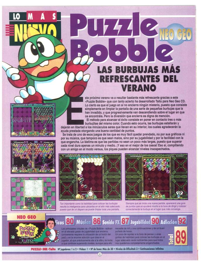 Análisis, Neo-Geo, Puzzle Bobble: Bust-A-Move, SNK, Taito Las burbujas más refrescantes del verano [Análisis de Puzzle Bobble: Bust-A-Move] Fecha: 08/1995Autor/a: HCteca 0 Comentarios Comparte esto: Compartir en X (Se abre en una ventana nueva) X Compartir en Facebook (Se abre en una ventana nueva) Facebook Me gusta Cargando... Relacionado