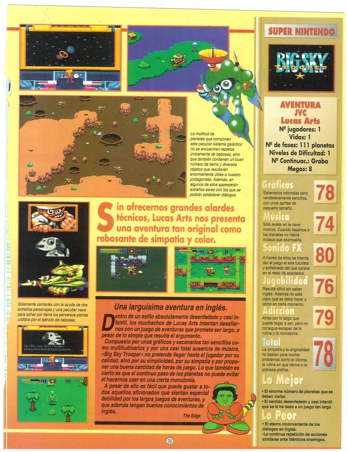 Análisis, Big Sky Trooper, JVC, Lucasfilm Games, Super Nintendo Aventuras de otra galaxia [Análisis de Big Sky Trooper] Fecha: 09/1995Autor/a: HCteca 0 Comentarios Comparte esto: Compartir en X (Se abre en una ventana nueva) X Compartir en Facebook (Se abre en una ventana nueva) Facebook Me gusta Cargando... Relacionado