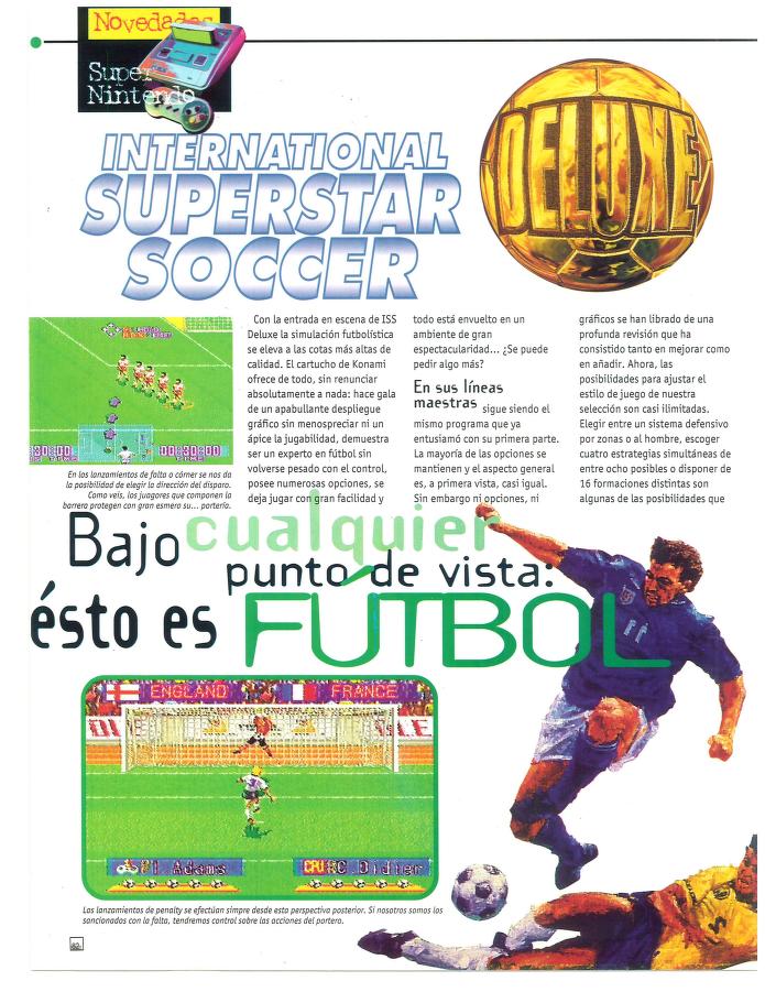 Análisis, International Superstar Soccer Deluxe, Konami, Super Nintendo Bajo cualquier punto de vista: esto es fútbol [Análisis de International Superstar Soccer Deluxe] Fecha: 12/1995Autor/a: HCteca 0 Comentarios Comparte esto: Compartir en X (Se abre en una ventana nueva) X Compartir en Facebook (Se abre en una ventana nueva) Facebook Me gusta Cargando... Relacionado