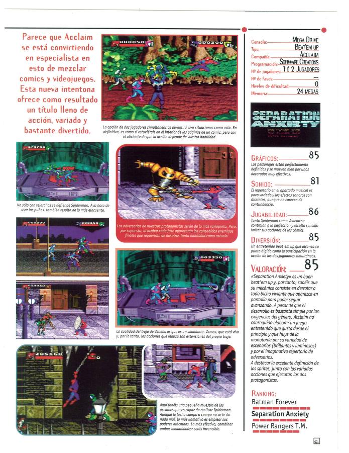 Acclaim, Análisis, Mega Drive, Software Creations, Venom - Spider-Man: Separation Anxiety Del cómic al beat ‘em up [Análisis de Venom – Spider-Man: Separation Anxiety] Fecha: 12/1995Autor/a: HCteca 0 Comentarios Comparte esto: Compartir en X (Se abre en una ventana nueva) X Compartir en Facebook (Se abre en una ventana nueva) Facebook Me gusta Cargando... Relacionado