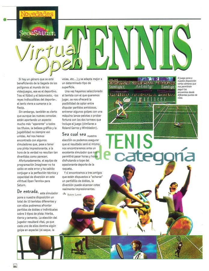 Acclaim, Análisis, Imagineer, SEGA Saturn, Virtual Open Tennis Tenis de categoría [Análisis de Virtual Open Tennis] Fecha: 05/1996Autor/a: HCteca 0 Comentarios Comparte esto: Compartir en X (Se abre en una ventana nueva) X Compartir en Facebook (Se abre en una ventana nueva) Facebook Me gusta Cargando... Relacionado
