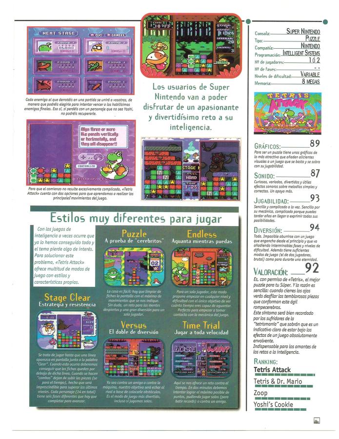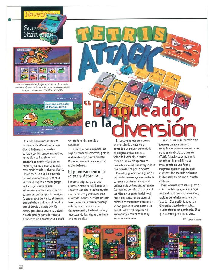 Análisis, Intelligent Systems, Nintendo, Super Nintendo, Tetris Attack ‘Bloqueado’ en la diversión [Análisis de Tetris Attack] Fecha: 10/1996Autor/a: HCteca 0 Comentarios Comparte esto: Compartir en X (Se abre en una ventana nueva) X Comparte en Facebook (Se abre en una ventana nueva) Facebook Me gusta Cargando... Relacionado