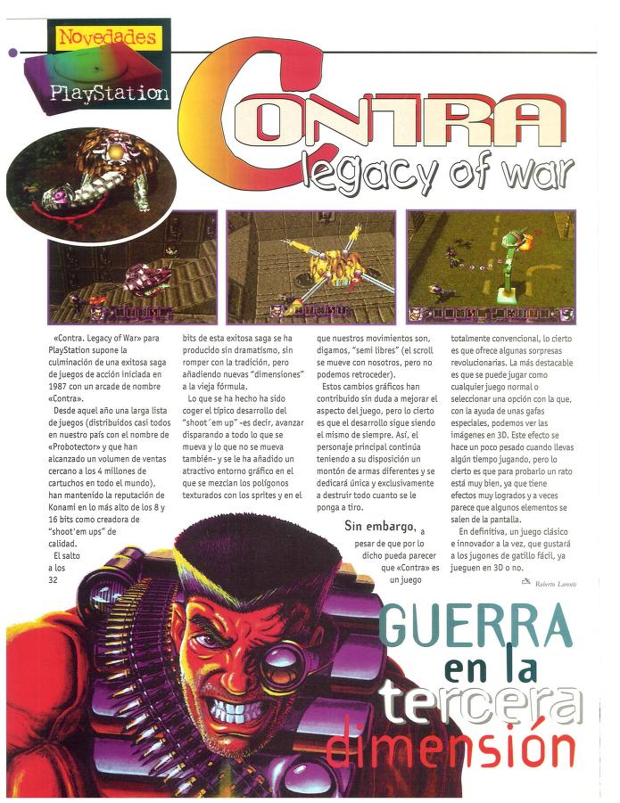Análisis, Appaloosa Interactive, Contra: Legacy of War, Konami, PlayStation Guerra en la tercera dimensión [Análisis de Contra: Legacy of War] Fecha: 03/1997Autor/a: HCteca 0 Comentarios Comparte esto: Compartir en X (Se abre en una ventana nueva) X Comparte en Facebook (Se abre en una ventana nueva) Facebook Me gusta Cargando... Relacionado