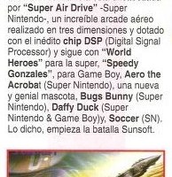 Aero the Acro-Bat, Bugs Bunny: Rabbit Rampage, Daffy Duck: The Marvin Missions, Game Boy, Noticias, Speedy Gonzales, Sunsoft, Super Air Diver, Super Nintendo, World Heroes