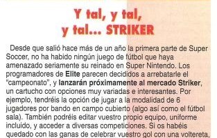 Elite, Noticias, Striker, Super Nintendo